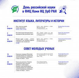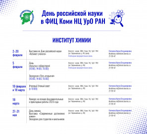 В Коми научном центре УрО РАН (г. Сыктывкар) традиционно ко Дню российской науки, отмечаемому 8 февраля, проводятся масштабные дни открытых дверей, предлагая посетителям погрузиться в захватывающий мир современных исследований. Программа этого года включает в себя уникальные экскурсии в лаборатории институтов, посещение научного музея с редкими экспонатами и открытые лекции ведущих ученых, наглядно демонстрирующие передовые разработки центра.