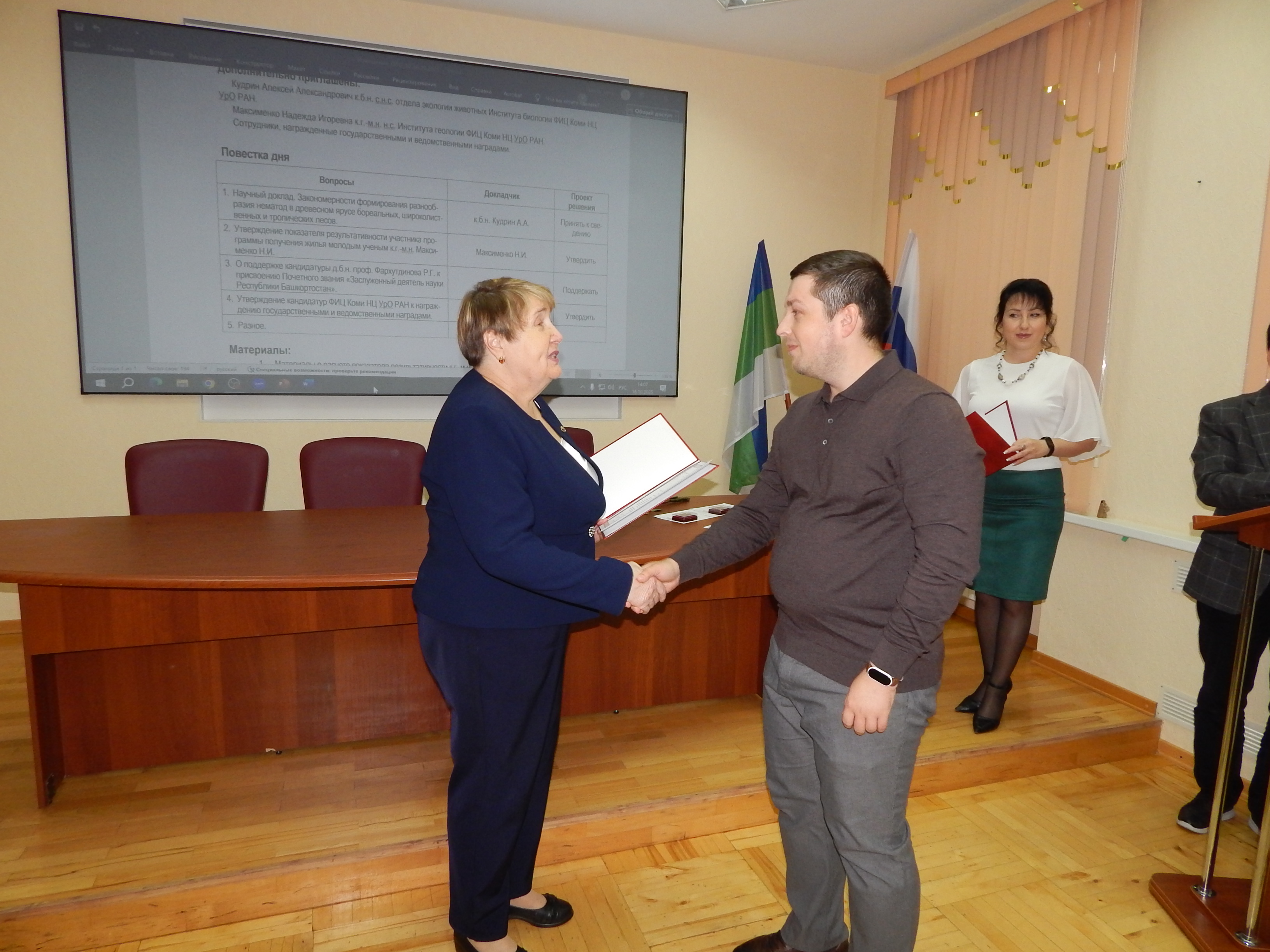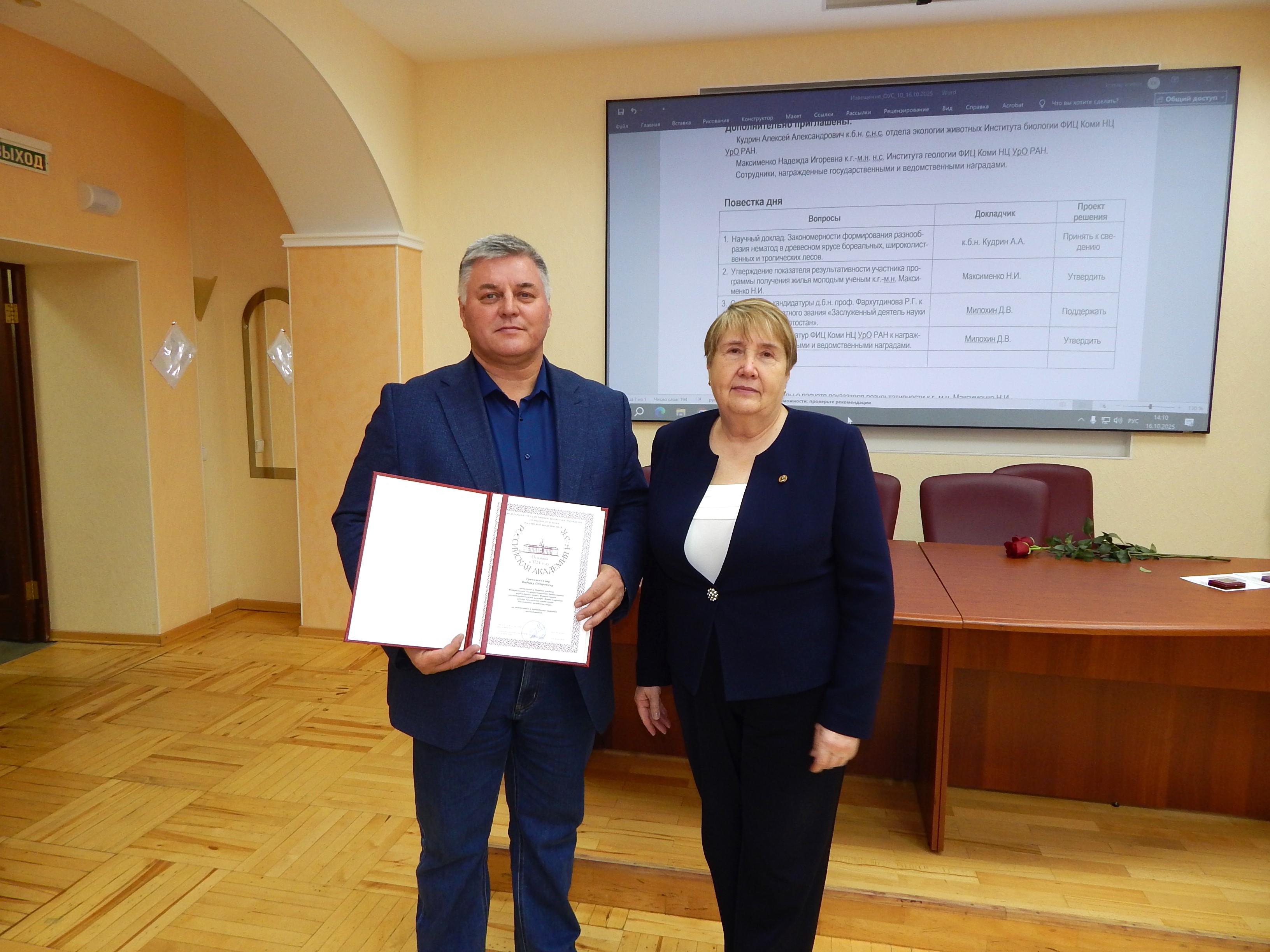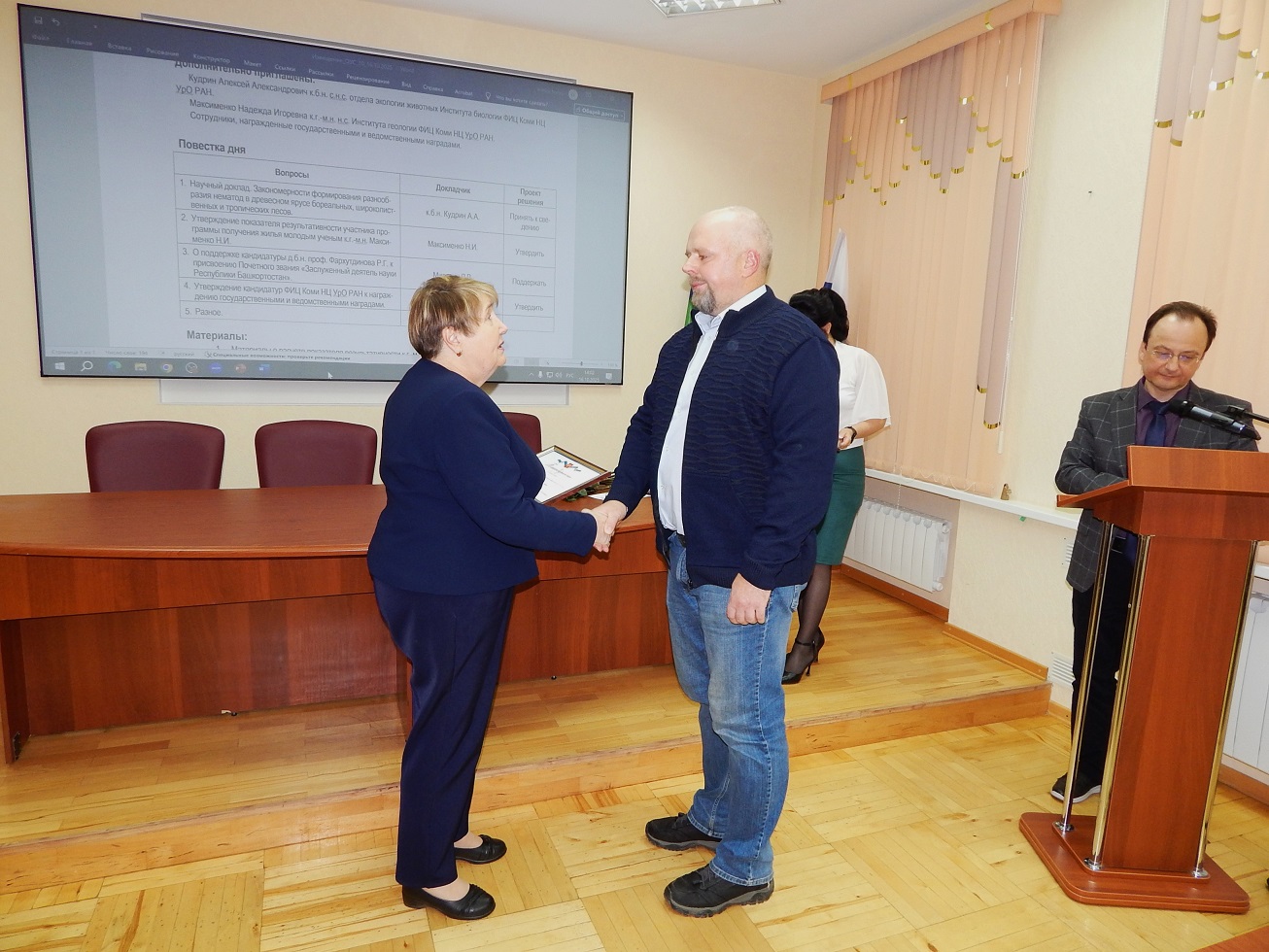 За содействие в проведении научных исследований Благодарность УрО РАН объявлена Гречишникову Вадиму Петровичу – ФИЦ Коми НЦ УрО РАН.
