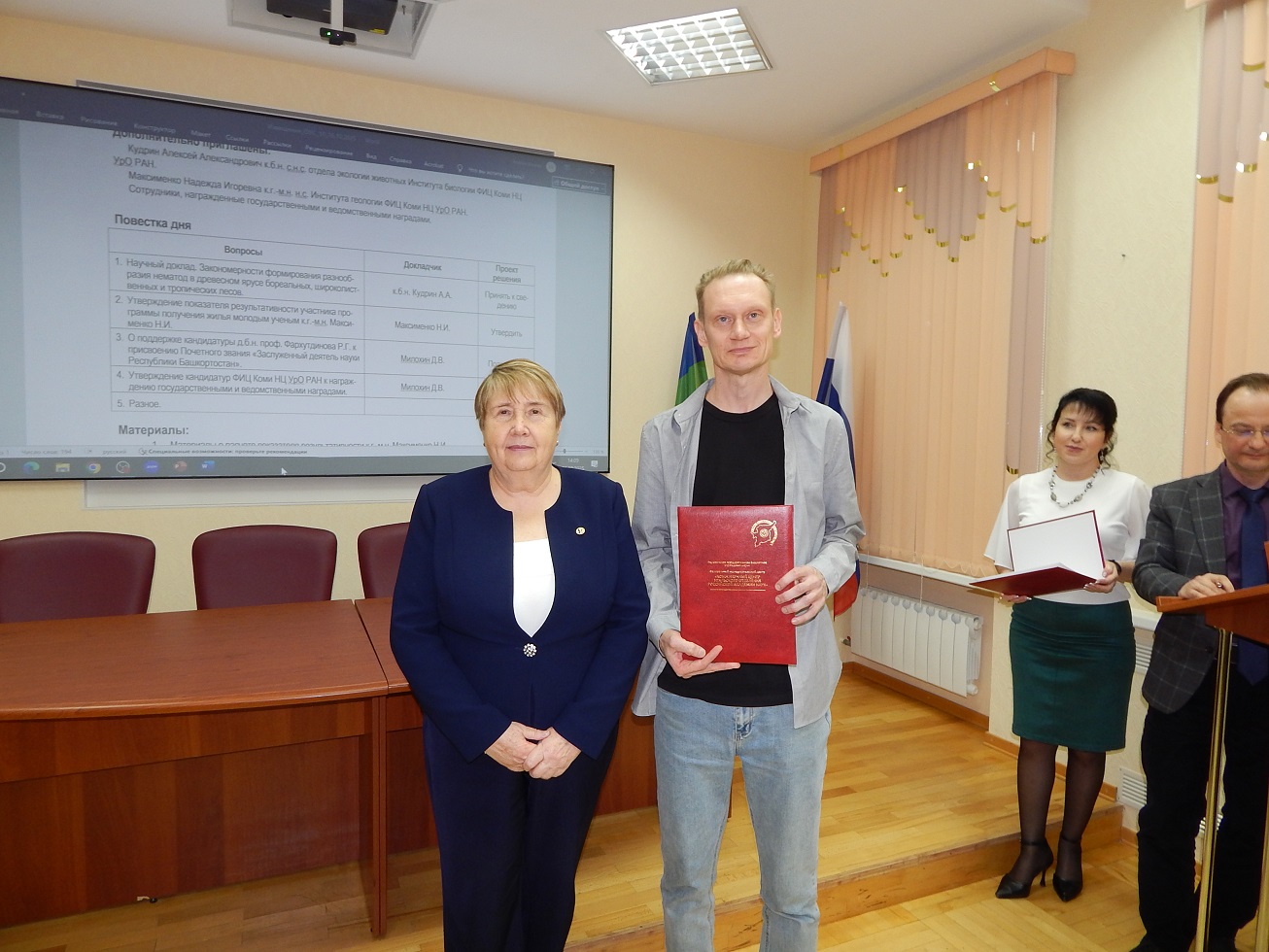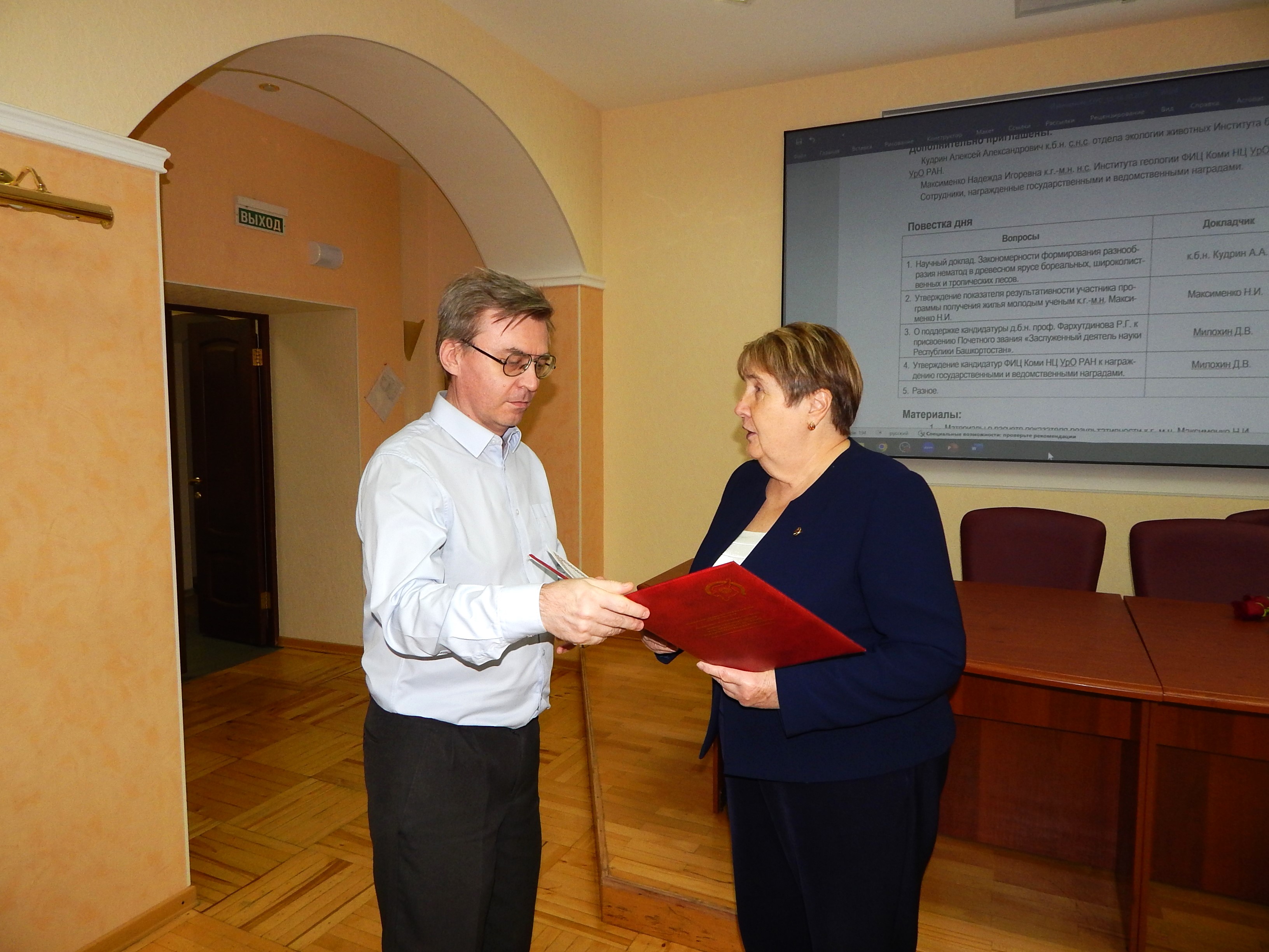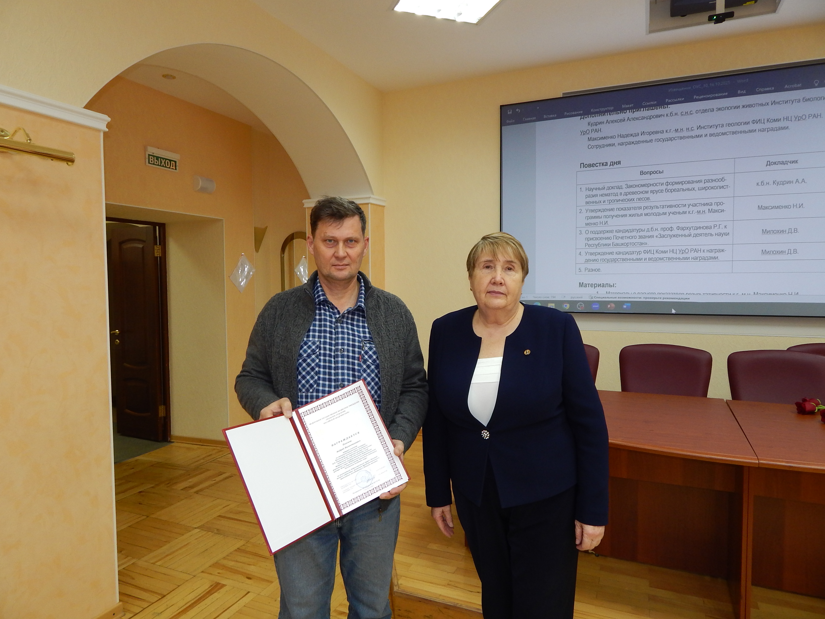 За содействие в проведении научных исследований Благодарность УрО РАН объявлена Гречишникову Вадиму Петровичу – ФИЦ Коми НЦ УрО РАН.