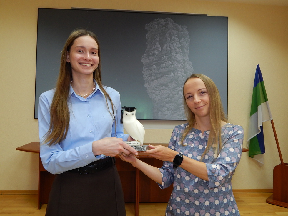 Традиция передачи «Совы» как символа мудрости, знаний и опыта от выпускников новичкам была основана в Коми научном центре в 2019 году. Автором этой композиции является научный сотрудник Физико-математического института, кандидат физико-математических наук Андрей Карпов, который не только разработал ее образ, но и самостоятельно изготовил в лаборатории института.![]()