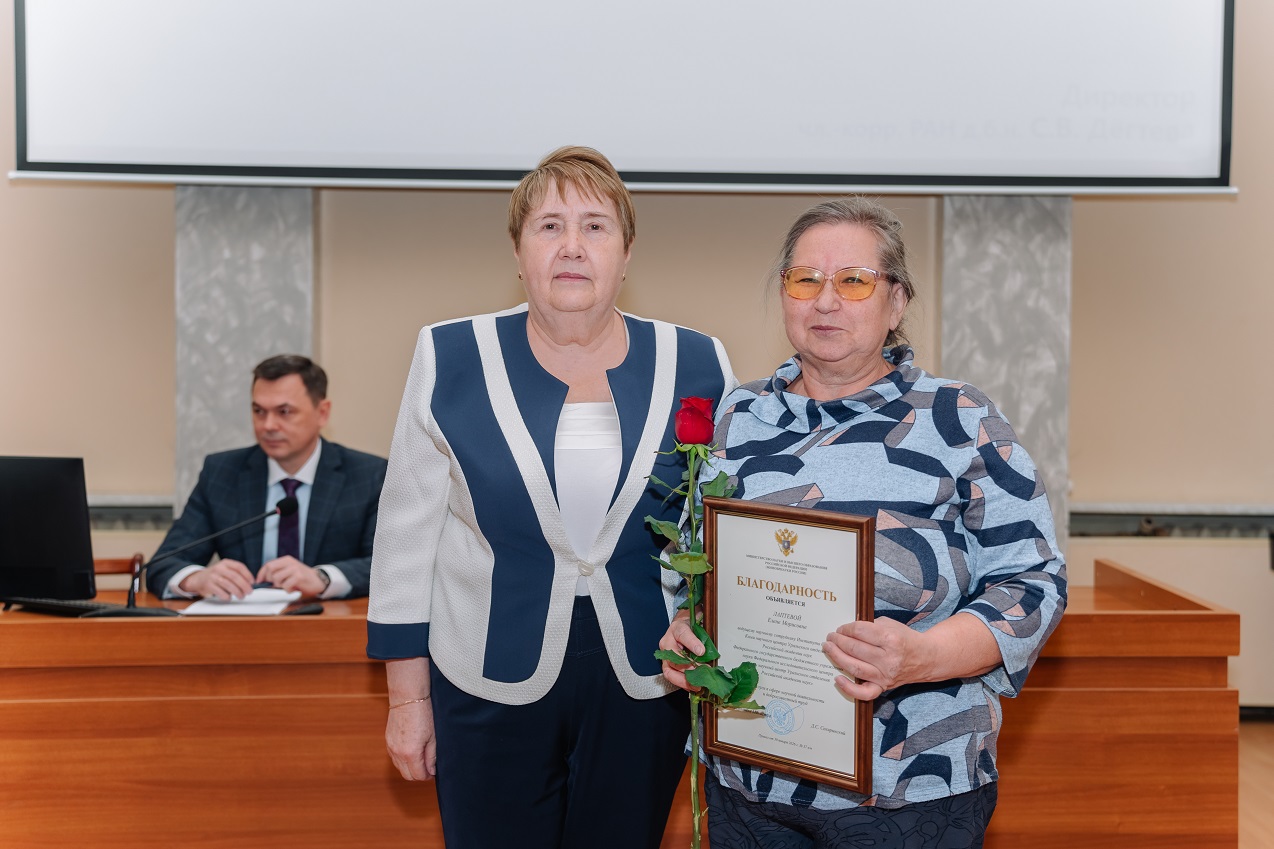 На Общем собрании коллектива ФИЦ Коми НЦ УрО РАН директор Центра, член-корреспондент РАН Светлана Владимировна Дёгтева в торжественной обстановке вручила сотрудникам государственные и ведомственные награды.